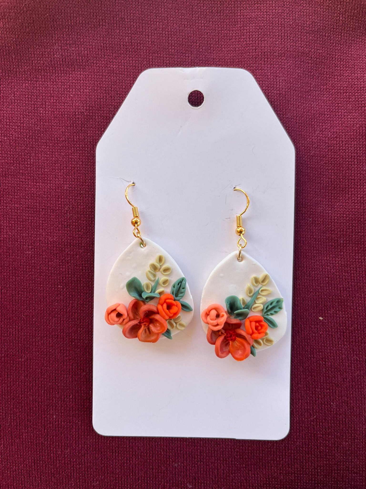 + Free ShippingHandcrafted on a triangular pearl-white base, this striking pair of earrings features a bold red bloom at the center, accompanied by two smaller flowers in red and orange. Lush green and soft light-green leaves form a delicate backdrop, creating a vibrant composition that captures the lively beauty of a blossoming garden. Perfect for adding a touch of elegance and colorful charm to any outfit.